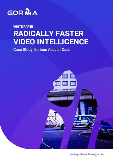 This whitepaper shows demonstrates Gorilla’s AI-driven video analytics platform significantly reduces the time needed to review CCTV footage. In a real-life serious assault case, Gorilla cut the analysis time from over 185 hours to just 15 by using tools like motion detection, person tracking, and video search to quickly locate key evidence across multiple video sources.